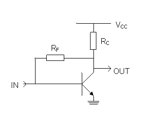 Zadanie 2: Dla układu jak na poniższym schemacie (gdzie VCC = 15 V, RC = 1.5 Ω, RF = 1 MΩ, β = 300) wyznaczyć punkt pracy (IC, VCE).