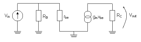 Ze schematu widać, że napięcie wejściowe jest równe napięciu odłożonemu na rbe: